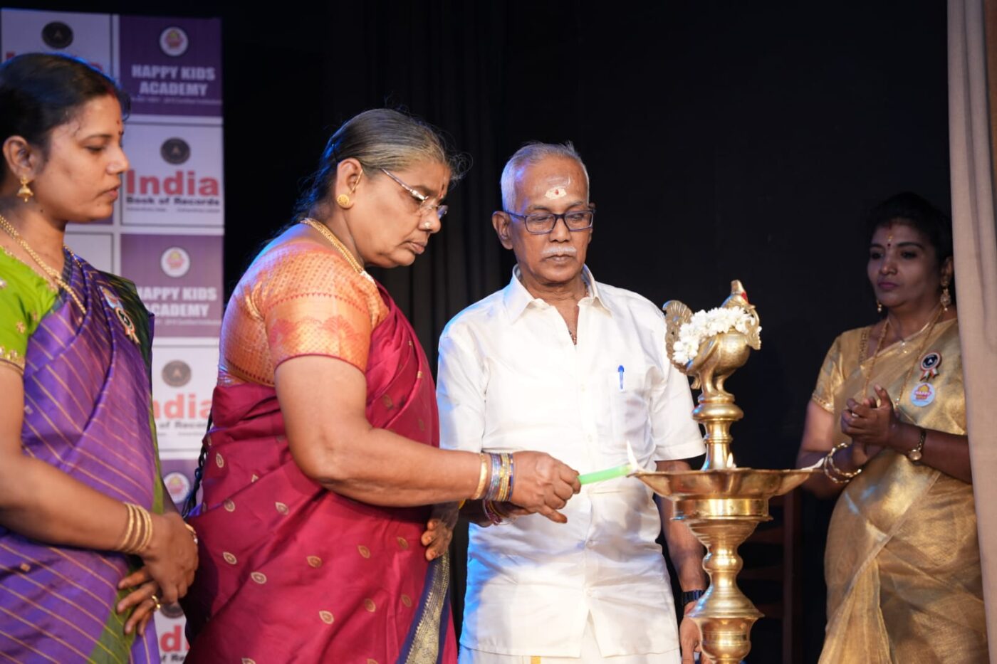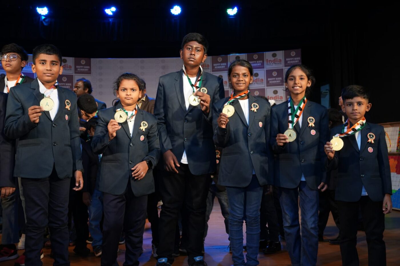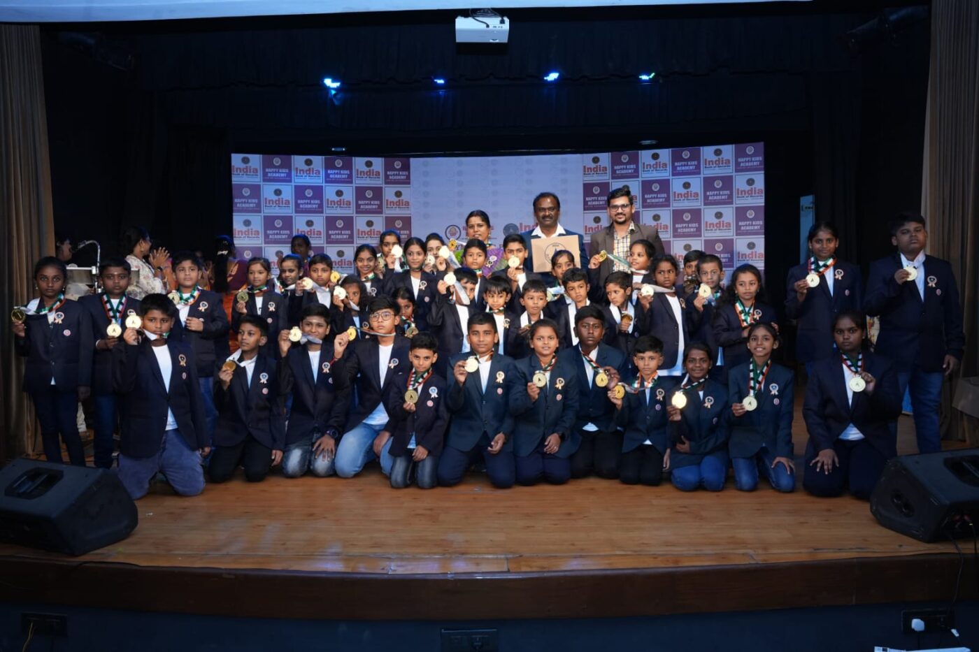 Happy Kids Academy, Chennai, Tamil Nadu, marked its name in the prestigious India Book of Records for the maximum number of students demonstrating talents blindfolded under a roof.